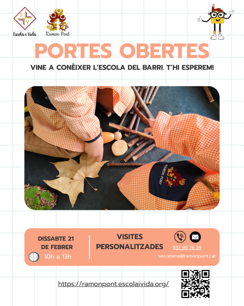 El dissabte 21 de febrer, de 10 a 13 hores, l’escola Ramon Pont celebrarà una jornada de portes obertes per donar a conèixer el centre a les famílies interessades. A més de la visita en aquest horari, l’escola també ofereix la possibilitat de fer visites personalitzades, que es poden sol·licitar contactant amb el centre al 937 85 76 39 o a través del correu secretaria@ramonpont.cat.